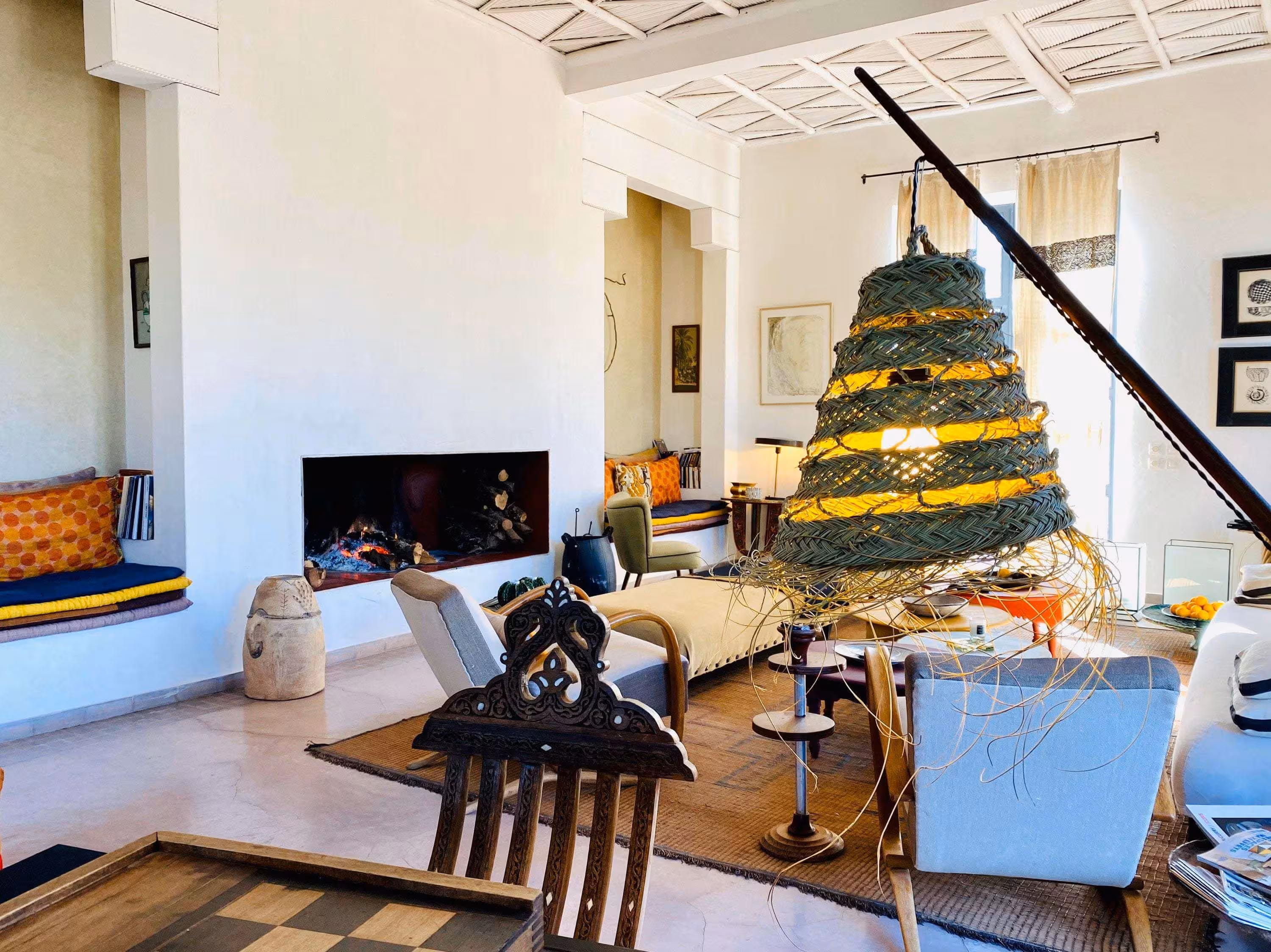 On adore le côté brut de la matière et les jeux d’ombres et de lumières qu’elle dessine sur les murs. Diffuse une lumière chaude.